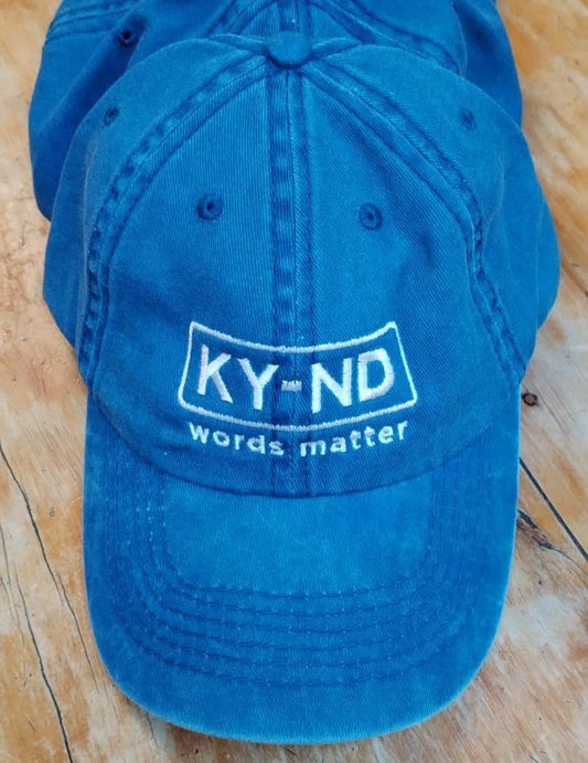 KY-ND Aqua Blue Washed Denim Cap 'words matter'